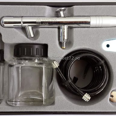 MACTAK аэрограф 678-108 верхний бак, сопло 0,3мм, с принадлежностями 8 предм.