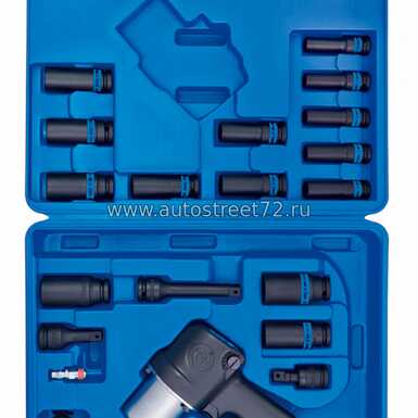 Гайковерт пневматический ударный 3/4"", 1085 Нм, с комплектом ударных головок, 18 предметов