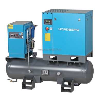 Компрессор винтовой, 7,5 кВт, 10 бар, 900 л/мин, ресивер 260л, IP55, осушитель NORDBERG NCC10RD