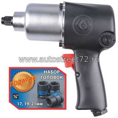 Пневмогайковерт ударный 1/2", 678Hм, 8000 об/мин, 3 головки в подарок KINGTONY P33421-040B