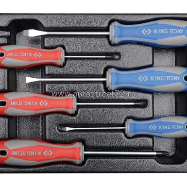 Набор силовых отверток в ложементе из 6 предметов KING TONY 9-31106MR применяется в автосервисе, в гараже, на промышленном предприятии.