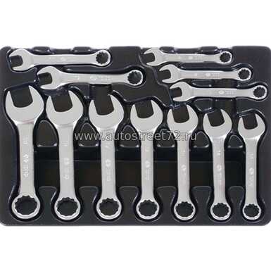 Набор укороченных комбинированных ключей, 12 предметов ложемент, king tony 9-1282mr