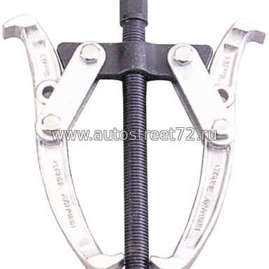 Демонтаж подшипников, шкивов и прочих деталей, запрессованных в обойму или установленных на вал. Применение съёмника помогает демонтировать деталь без перекоса, с соблюдением соосности. Классическая форма и надёжная конструкция съёмника позволяет использовать его в разных отраслях и видах техники.