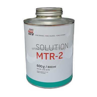 Раствор-катализатор для нанесения на отшерохованную внутреннюю поверхность шины, а также на поверхность кратера повреждения и клеящий слой пластырей REMA TIP TOP и перед дублированием прослоечной резиной MTR RUBBER. Рабочая температура 100°- 160°.