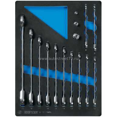 Набор трещоточных комбинированных ключей, ложемент, 15 предметов