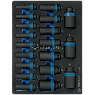 Набор ударных глубоких торцевых головок 1/2"", шестигранные, 10-36 мм, ложемент, 19 предмет