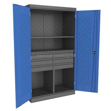 Шкаф инструментальный серии «PROFFI» предназначен для хранения оснастки, приспособлений и инструмента на рабочих местах в мастерских, цехах и других производственных зонах. Шкаф изготовлен из листовой стали и обеспечивает надежное запирание дверей ригельной системой.