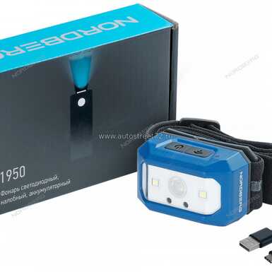 Фонарь светодиодный налобный, аккумуляторный, 3,7 В NORDBERG 1950